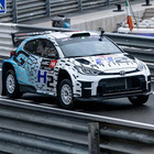 Toyota GR Yaris Rally2 H2 Concept al debutto con Akio Toyoda al volante. La vettura a idrogeno sfila sul circuito cittadino di Monaco